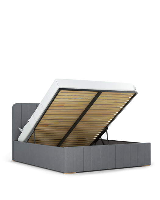 Inovatīvais divu funkciju mehānisms ļauj pacelt gultas rāmi paralēli zemei, kas atvieglo piekļuvi telpai zem gultas un gultas veļas maiņai.