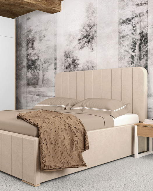 Gulta stāv uz 2 cm masīvām ozolkoka kājām, kas atvieglo ikdienas uzkopšanu un nodrošina konstrukcijas stabilitāti.